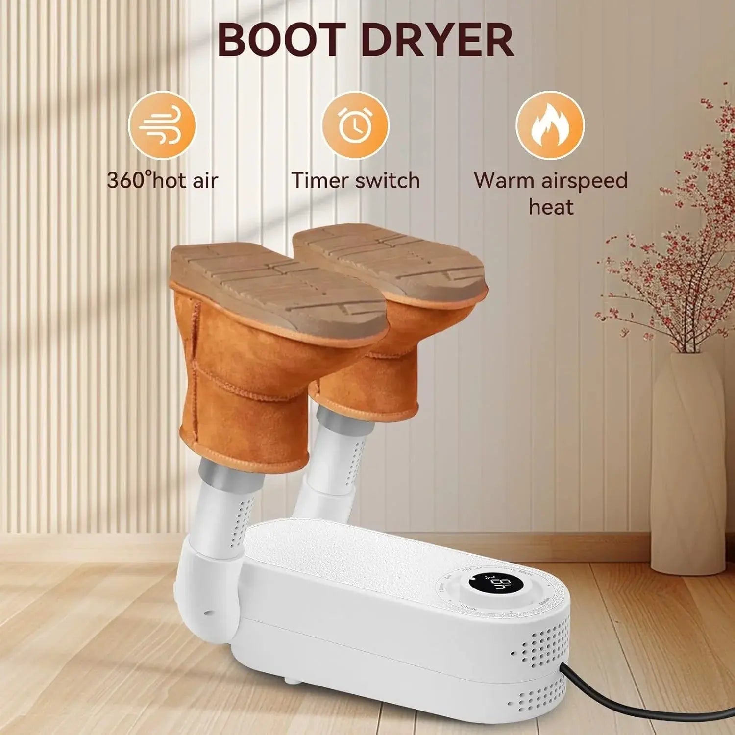 Unlike traditional dryers that only target one area, the 360° circulating hot air technology ensures no damp spots are left behind. This all-around drying capability keeps both the inside and outside of your shoes free from residual moisture.